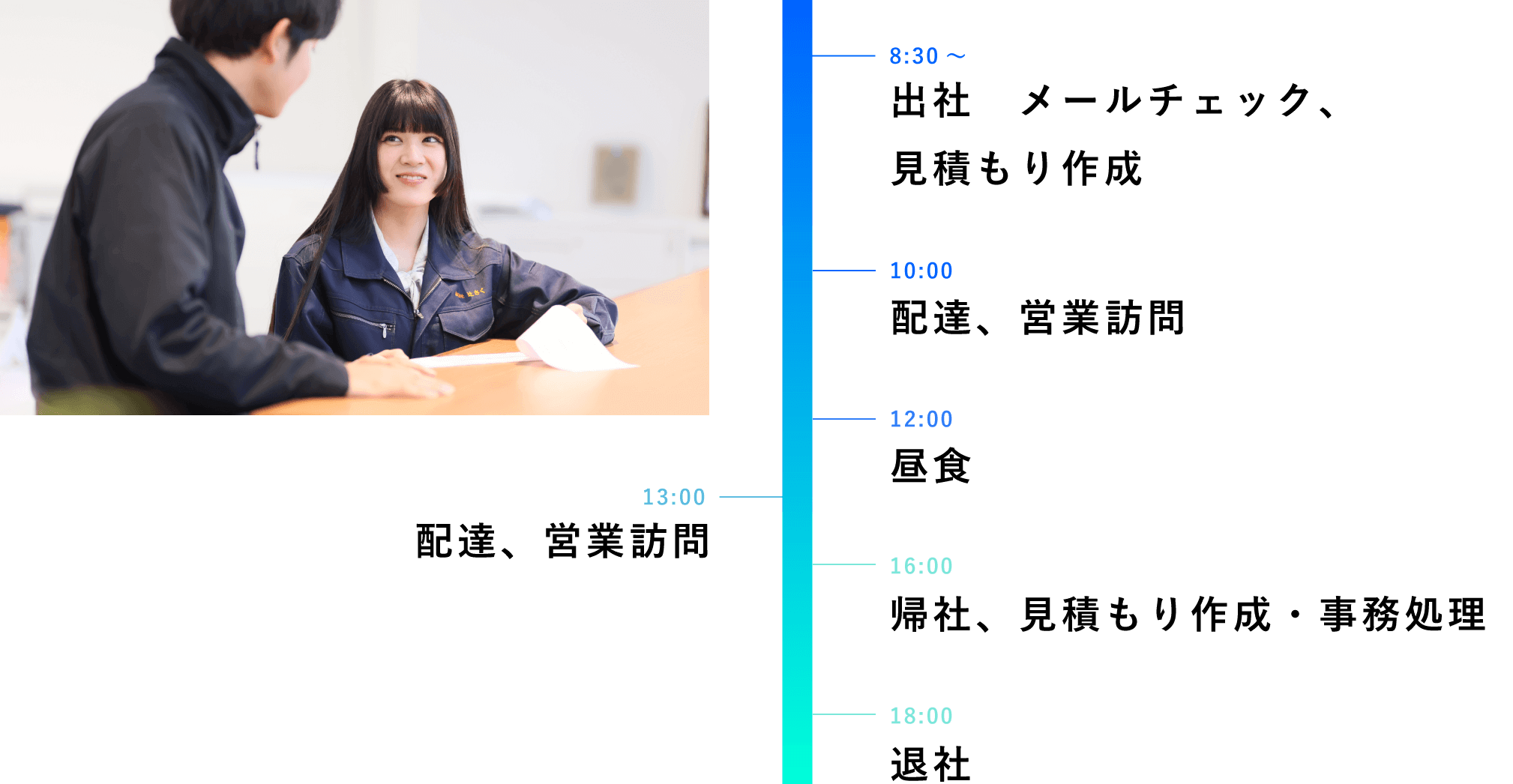 学生時代に2週間のカンボジア研修に参加し、インフラが整っていない不便な生活を体験しました。その経験を通してライフラインの大切さを実感し、「人々の暮らしを支える仕事に携わりたい」と思うようになりました。事務職ではなく現場にも関われる総合職を希望していたところ、当社の「男女不問の総合職」募集を見つけてすぐに応募しました。