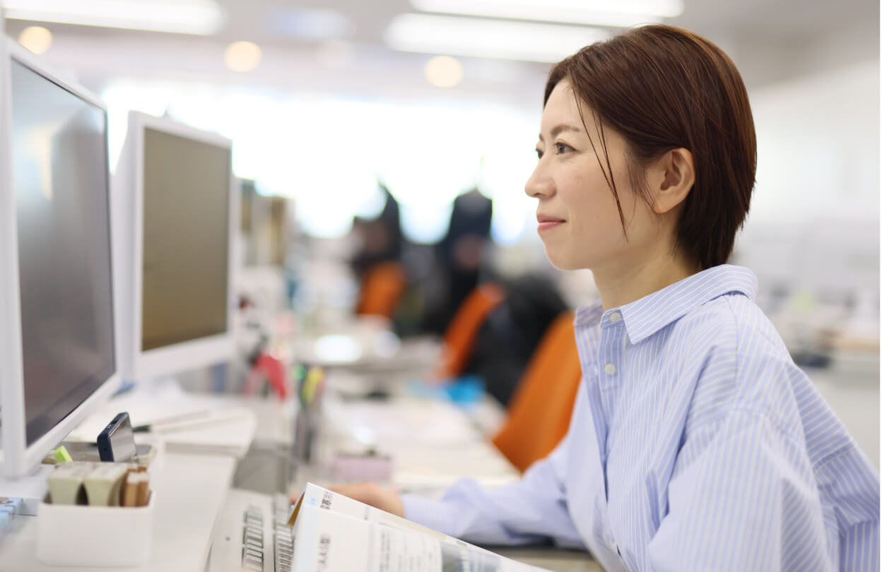 もともと人見知りな性格なので、意識して社内の方はもちろん、来社されたお客様にも自分から挨拶するようにしています。また、業務では「ダブルチェック」を徹底しています。納品書や請求書などはお客様ごとに仕様が異なるため、ミスがないよう一つひとつ丁寧に確認することを心掛けています。